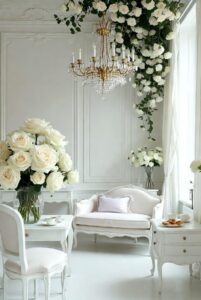 Pastel blue linens, floral china with hints of lavender, hand-painted ceramics and delicate ribbons would replace harsh contrasts. The palette whispers rather than shouts — proof that luxury doesn’t need to be loud.